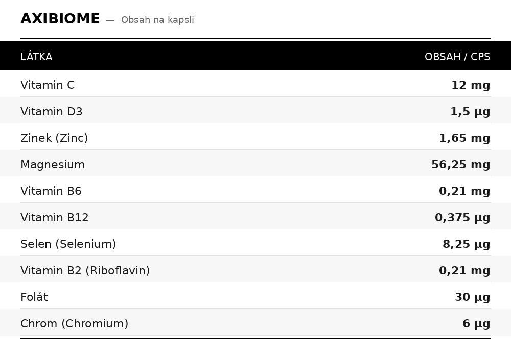 *Standardizovaný postbiotický komplex FLOW – Lacticaseibacillus rhamnosus, Lac. casei, Lac. paracasei, Lactiplantibacillus plantarum, Lactobacillus gasseri, L. helveticus, L. acidophilus, L. delbrueckii subsp. bulgaricus Latilactobacillus sakei, Ligilactobacillus salivarius, Lactococcus lactis subsp. lactis, Bifidobacterium longum subsp. longum,